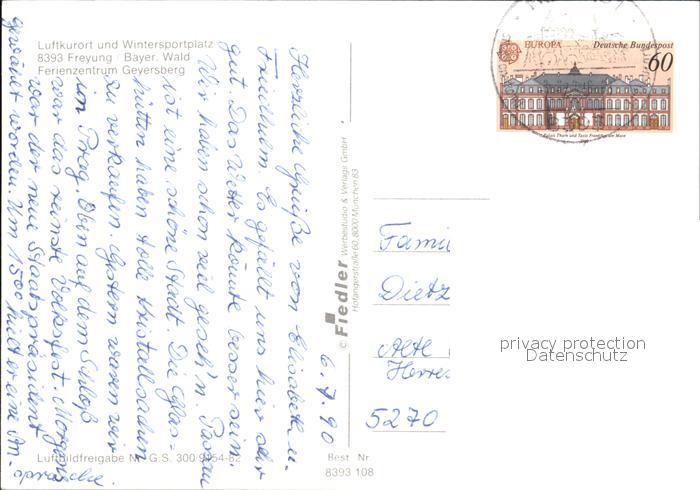 72398194 alte Postkarte Freyung Fliegeraufnahme Ferienzentrum Geyersberg postalisch gelaufen Erhaltung siehe scans KatCode: 11110009272118