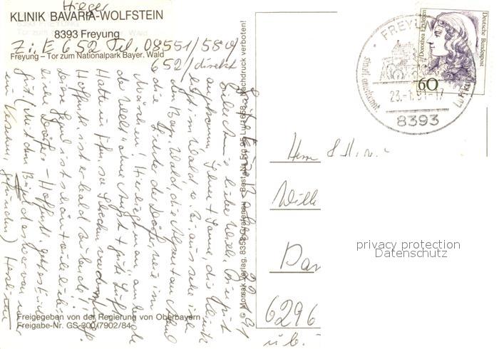 73196685 alte Postkarte Freyung Fliegeraufnahme Klinik Bavaria-Wolfstein postalisch gelaufen Erhaltung siehe scans [NatalD47] KatCode: 11110009272118