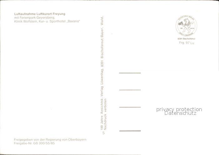 72015746 Freyung Fliegeraufnahme mit Ferienpark Geyersberg Klinik Wolfstein postalisch nicht gelaufen Erhaltung siehe scans KatCode: 11110009272118