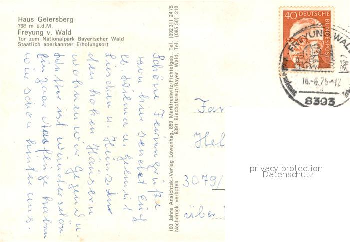 73685087 alte Postkarte Freyung Haus Geiersberg Fliegeraufnahme postalisch gelaufen Erhaltung siehe scans [FriedD77] KatCode: 11110009272118