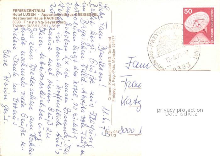 72374710 alte Postkarte Freyung Hotel Lusen postalisch gelaufen Erhaltung siehe scans KatCode: 11110009272118