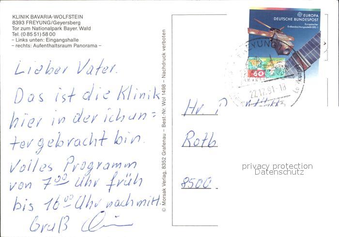 72073390 alte Postkarte Freyung Klinik Bavaria Wolfstein postalisch gelaufen Erhaltung siehe scans KatCode: 11110009272118