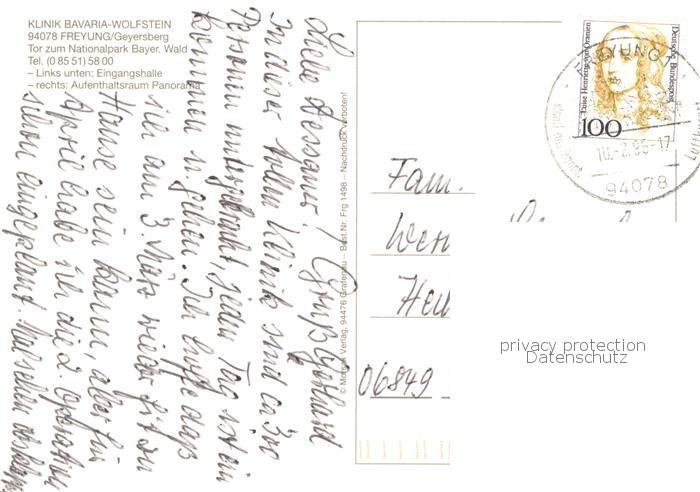 73751614 alte Postkarte Freyung Klinik Bavaria Wolfstein Panorama Speiseraum Foyer postalisch gelaufen Erhaltung siehe scans [WerneD78] KatCode: 11110009272118