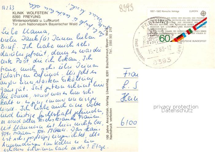 73165588 alte Postkarte Freyung Klinik Wolfstein postalisch gelaufen Erhaltung siehe scans [WerneD78] KatCode: 11110009272118