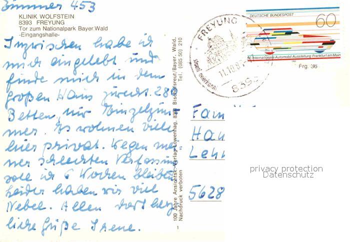 72692310 alte Postkarte Freyung Klinik Wolfstein Eingangshalle postalisch gelaufen Erhaltung siehe scans [FriedD77] KatCode: 11110009272118