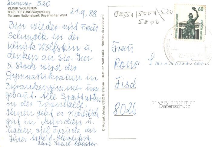 73752680 alte Postkarte Freyung Klinik Wolfstein postalisch gelaufen Erhaltung siehe scans [WerneD78] KatCode: 11110009272118