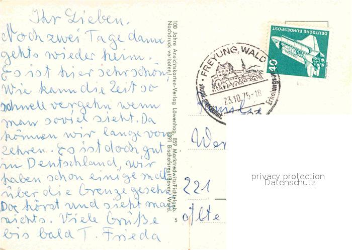 72765262 alte Postkarte Freyung Panorama Teilansichten Luftkurort Wanderwege Brunnen Waldpartie Geschichte postalisch gelaufen Erhaltung siehe scans [FriedD77] KatCode: 11110009272118