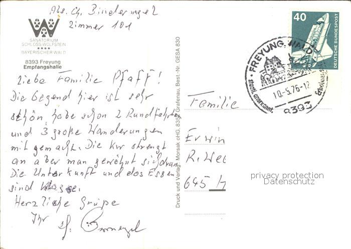 72575926 alte Postkarte Freyung Sanatorium Schlosswolfstein Empfangsmuehle postalisch gelaufen Erhaltung siehe scans [LiesaD40] KatCode: 11110009272118