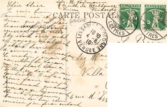 13874353 alte Postkarte Fribourg FR Academie St Croix postalisch gelaufen Erhaltung siehe scans [WerneD78] KatCode: 11470070270252