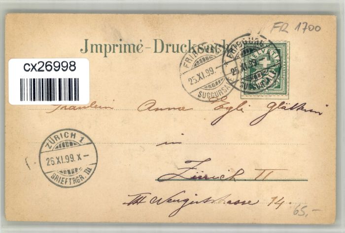 10849796 alte Postkarte Fribourg FR Fribourg Kapelle Loretto Convict Pont Grandfey postalisch gelaufen KatCode: 11470070270252