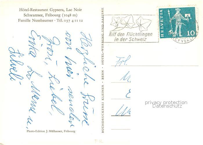 13747038 alte Postkarte Fribourg FR Restaurant-Hotel Gypsera Schwarzsee postalisch gelaufen Erhaltung siehe scans [LiesaD40] KatCode: 11470070270252