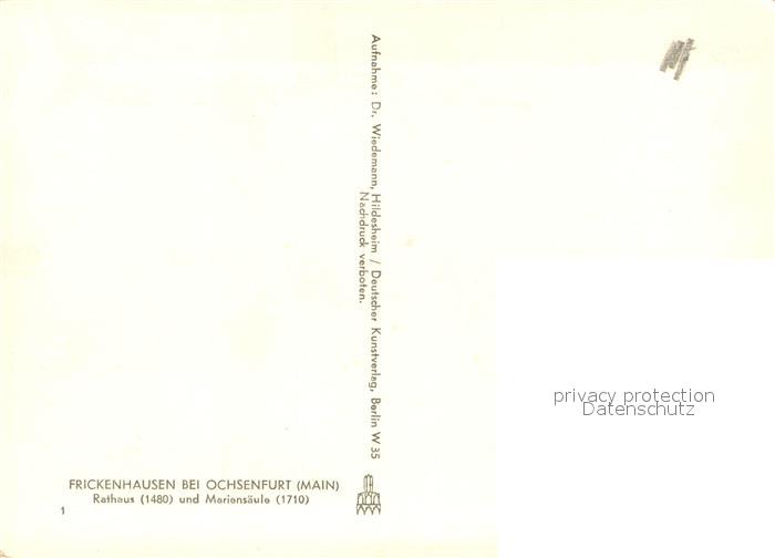 73746963 Frickenhausen Main Rathaus u. Mariensaeule postalisch nicht gelaufen Erhaltung siehe scans [LiesaD40] KatCode: 11110009679131