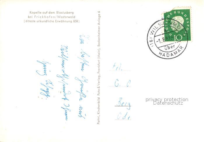 73017674 alte Postkarte Frickenhofen Oberpfalz Kapelle auf dem Blasiusberg postalisch gelaufen Erhaltung siehe scans [WerneD78] KatCode: 11110009373147