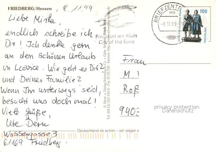73226471 alte Postkarte Friedberg Hessen Adolfsturm Brunnen Schloss postalisch gelaufen Erhaltung siehe scans [WerneD78] KatCode: 11110006440008