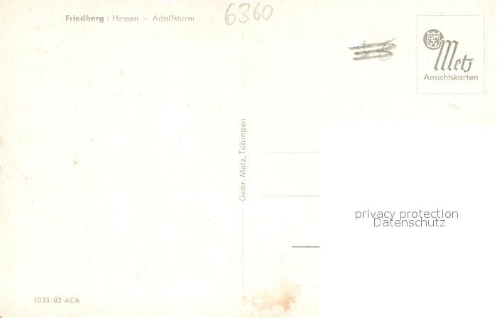 73694521 Friedberg Hessen Adolfsturm Burg postalisch nicht gelaufen Erhaltung siehe scans [FriedD77] KatCode: 11110006440008