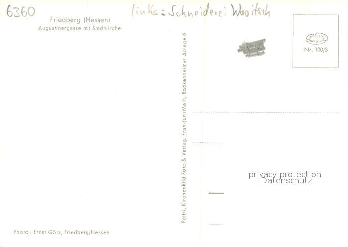 73706021 Friedberg Hessen Augustinergasse mit Stadtkirche Schneiderei postalisch nicht gelaufen Erhaltung siehe scans [LiesaD40] KatCode: 11110006440008