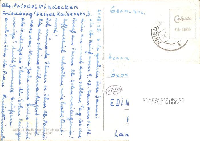 72098834 alte Postkarte Friedberg Hessen Blick auf Burg und Stadt postalisch gelaufen Erhaltung siehe scans KatCode: 11110006440008