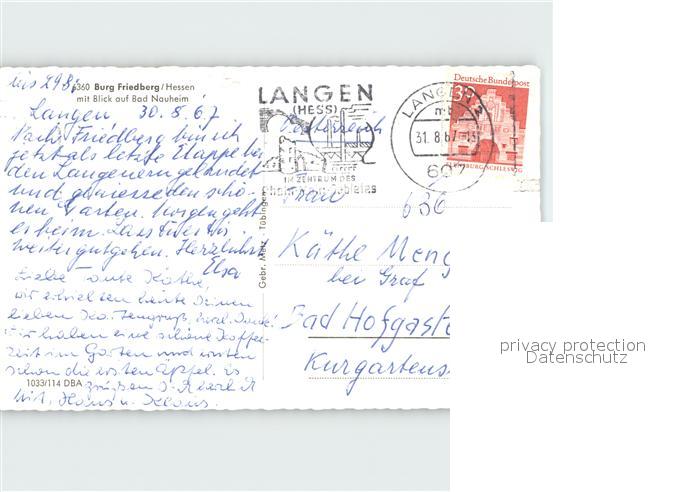 72133661 alte Postkarte Friedberg Hessen Burg Friedberg mit Blick auf Bad Nauheim postalisch gelaufen Erhaltung siehe scans KatCode: 11110006440008