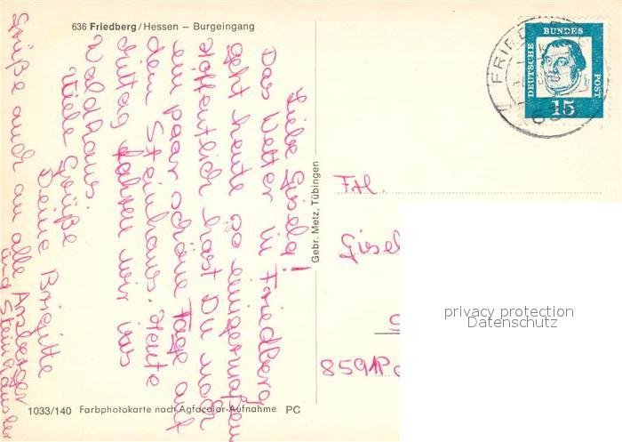 73226270 alte Postkarte Friedberg Hessen Burgeingang postalisch gelaufen Erhaltung siehe scans [FriedD77] KatCode: 11110006440008