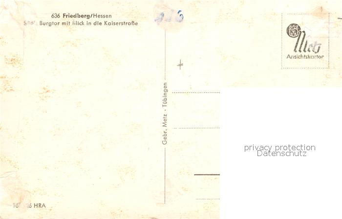 73225571 Friedberg Hessen Burgtor mit Blick in die Kaiserstrasse postalisch nicht gelaufen Erhaltung siehe scans [WerneD78] KatCode: 11110006440008
