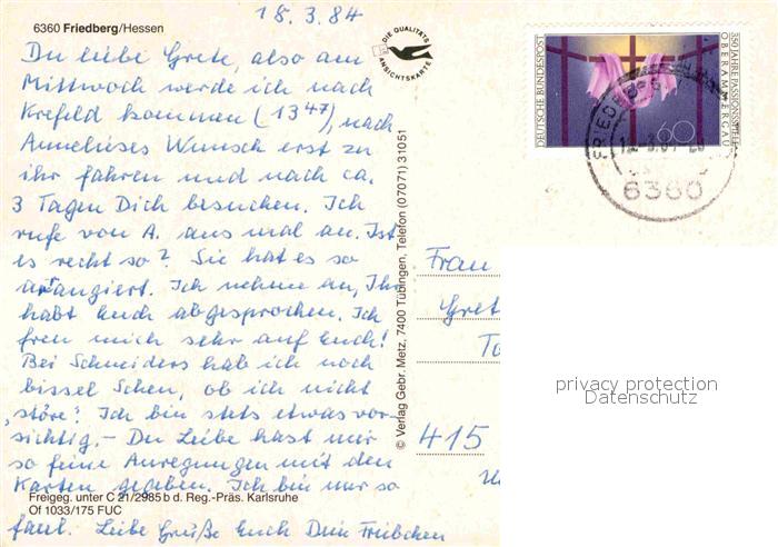 72903822 alte Postkarte Friedberg Hessen Fliegeraufnahme postalisch gelaufen Erhaltung siehe scans [FriedD77] KatCode: 11110006440008