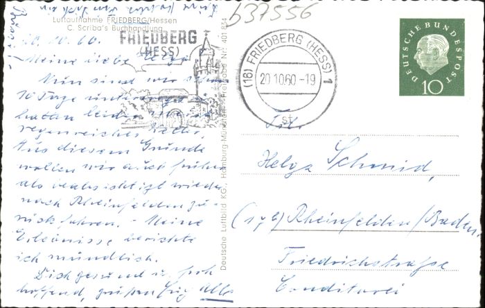 30725255 alte Postkarte Friedberg Hessen Fliegeraufnahme postalisch gelaufen KatCode: 11110006440008