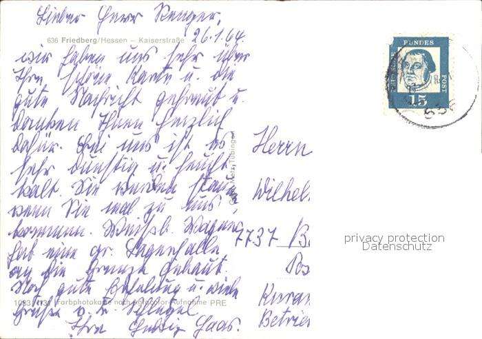 72530816 alte Postkarte Friedberg Hessen Kaiserstrasse postalisch gelaufen Erhaltung siehe scans [LiesaD40 kt094box] KatCode: 11110006440008