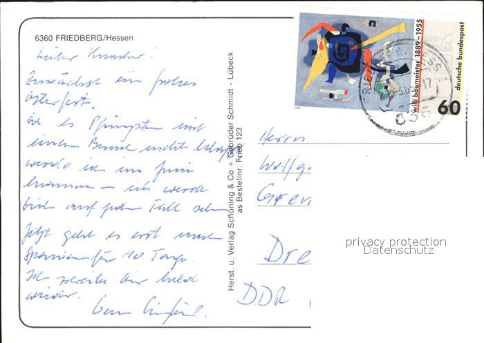 72406833 alte Postkarte Friedberg Hessen Schloss Kaiserstrasse Liebfrauenkirche Adolfsturm Geschichte postalisch gelaufen Erhaltung siehe scans KatCode: 11110006440008