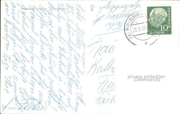 72098515 alte Postkarte Friedberg Hessen Stadtkirche postalisch gelaufen Erhaltung siehe scans KatCode: 11110006440008