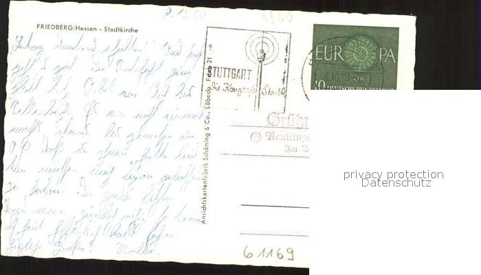 72030858 alte Postkarte Friedberg Hessen Stadtkirche postalisch gelaufen Erhaltung siehe scans KatCode: 11110006440008