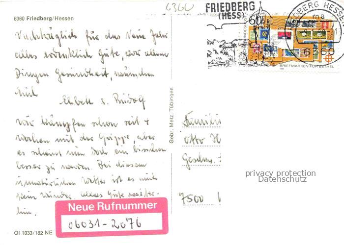 74156028 alte Postkarte Friedberg Hessen Stadtzentrum Adolfsturm Museum Stadtkirche postalisch gelaufen Erhaltung siehe scans [FriedD77] KatCode: 11110006440008