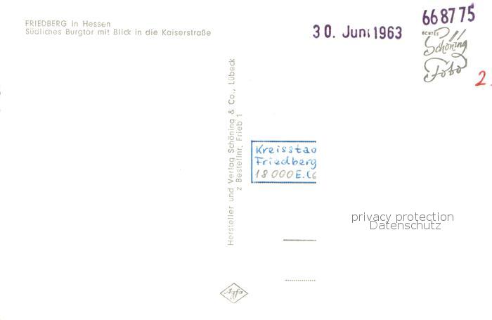 73761547 Friedberg Hessen Suedl Burgtor mit Blick in die Kaiserstrasse postalisch nicht gelaufen Erhaltung siehe scans [FriedD77] KatCode: 11110006440008