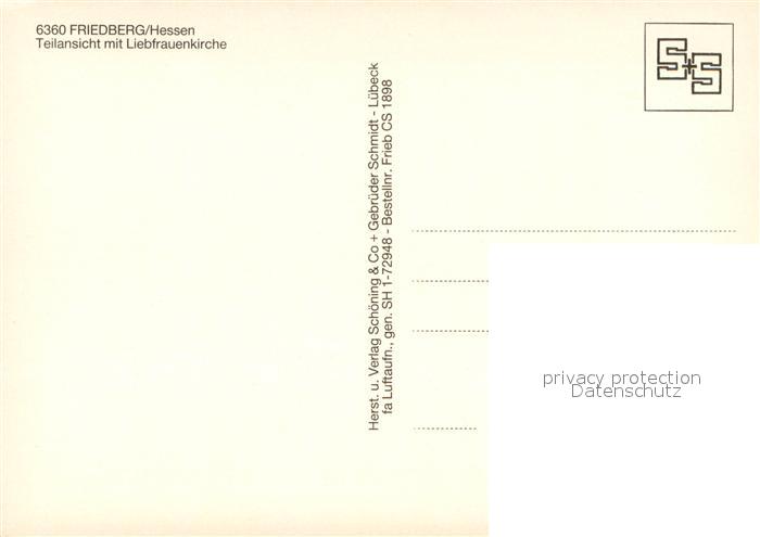 73715220 Friedberg Hessen Teilansicht mit Liebfrauenkirche postalisch nicht gelaufen Fliegeraufnahme Erhaltung siehe scans [FriedD77] KatCode: 11110006440008