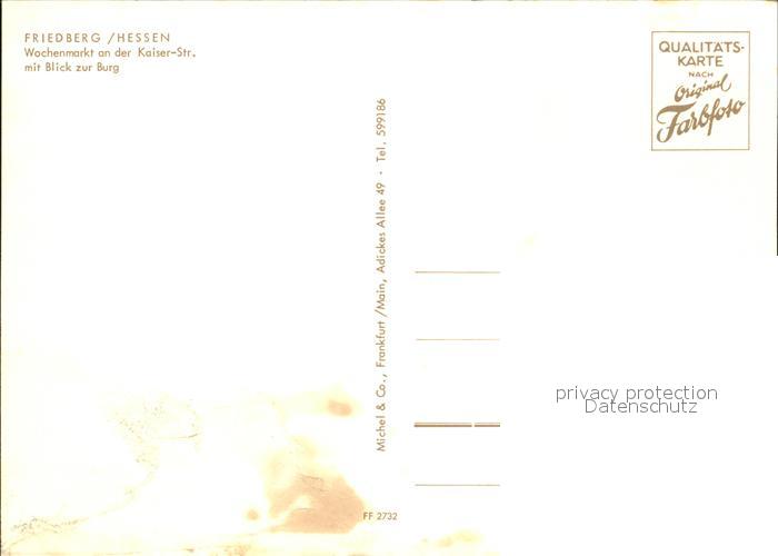 72530825 Friedberg Hessen Wochenmarkt an der Kaiser-Strasse mit Burg postalisch nicht gelaufen Erhaltung siehe scans [LiesaD40 kt094box] KatCode: 11110006440008