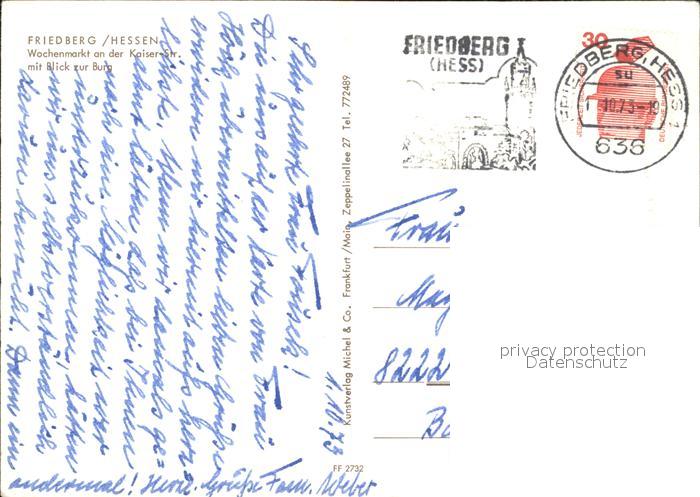 72473469 alte Postkarte Friedberg Hessen Wochenmarkt an der Kaiserstrasse postalisch gelaufen Erhaltung siehe scans KatCode: 11110006440008