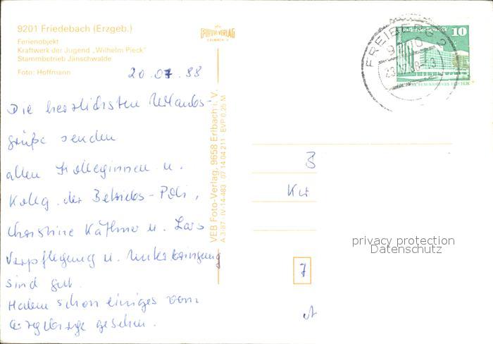 72315505 alte Postkarte Friedebach Sayda Ferienobjekt Wilhelm Pieck postalisch gelaufen Erhaltung siehe scans KatCode: 11110014177380