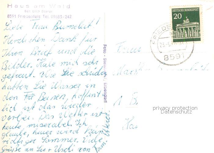 73853436 alte Postkarte Friedenfels Oberpfalz Bayern Haus am Wald postalisch gelaufen Erhaltung siehe scans [FriedD77] KatCode: 11110009377118