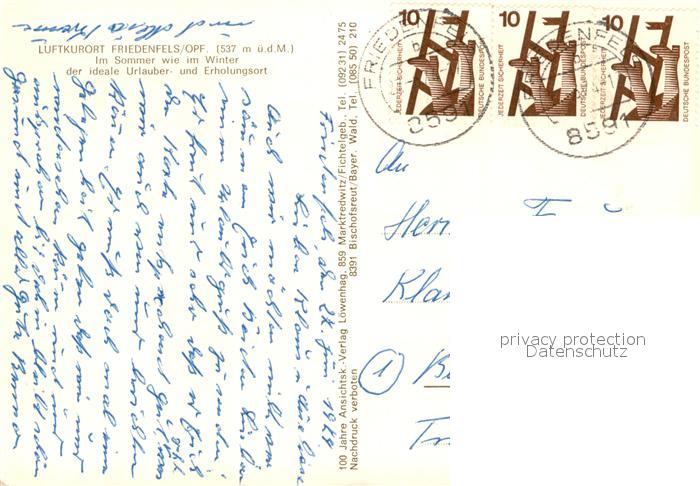 73129924 alte Postkarte Friedenfels Panorama postalisch gelaufen Erhaltung siehe scans [KathaD81] KatCode: 11110009377118