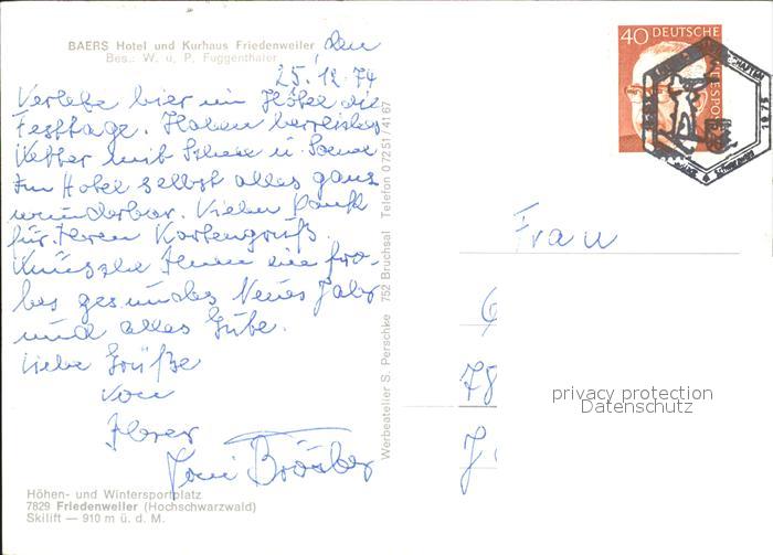 71830735 alte Postkarte Friedenweiler postalisch gelaufen Erhaltung siehe scans KatCode: 11110008315039