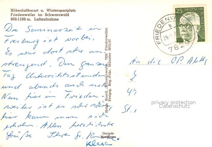 73271152 alte Postkarte Friedenweiler Fliegeraufnahme postalisch gelaufen Erhaltung siehe scans [WerneD78] KatCode: 11110008315039