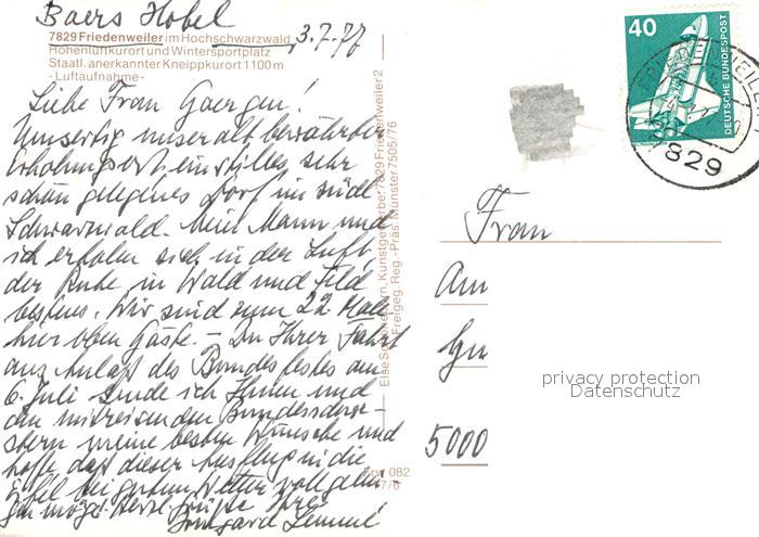 72943930 alte Postkarte Friedenweiler Fliegeraufnahme postalisch gelaufen Erhaltung siehe scans [KathaD81] KatCode: 11110008315039
