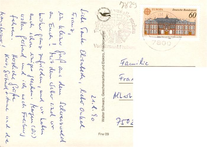 73931209 alte Postkarte Friedenweiler Fliegeraufnahme Strandbadstrasse Schafhof Freibad postalisch gelaufen Erhaltung siehe scans [WerneD78] KatCode: 11110008315039