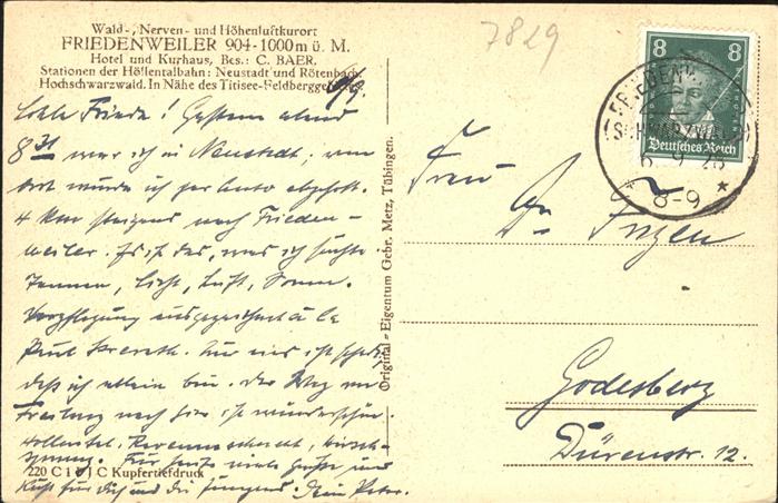41396512 Friedenweiler Hotel Kurhaus Wald- und Höhenluftkurort KatCode 11110008315039