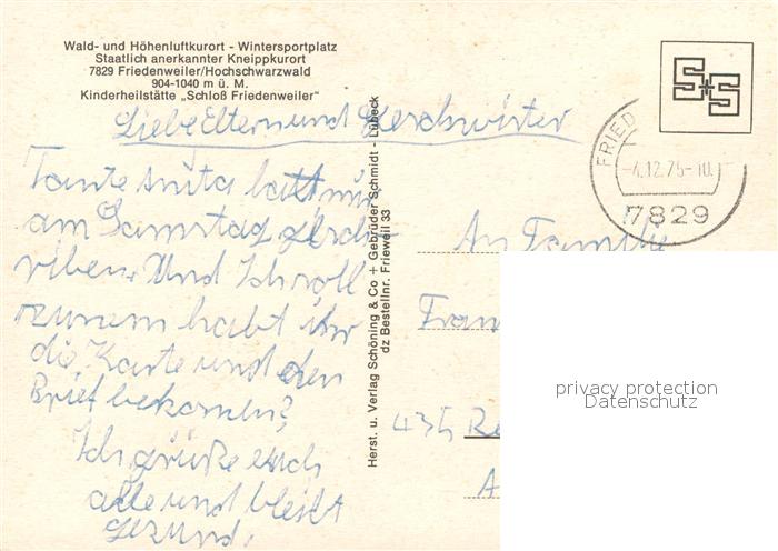 73123144 alte Postkarte Friedenweiler Kinderheilstaette Schloss Friedenweiler postalisch gelaufen Erhaltung siehe scans [LiesaD40] KatCode: 11110008315039