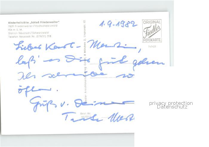 72331760 Friedenweiler Kinderheilstaette Schloss Friedenweiler postalisch nicht gelaufen Erhaltung siehe scans KatCode: 11110008315039