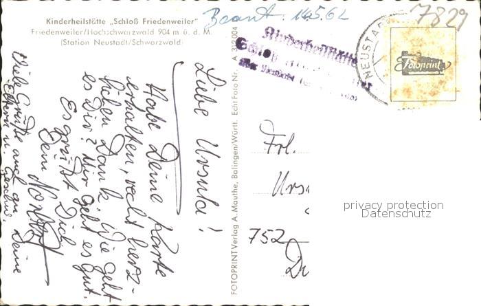 41811495 alte Postkarte Friedenweiler Kinderheilstaette Schloss Friedenweiler postalisch gelaufen Erhaltung siehe scans KatCode: 11110008315039