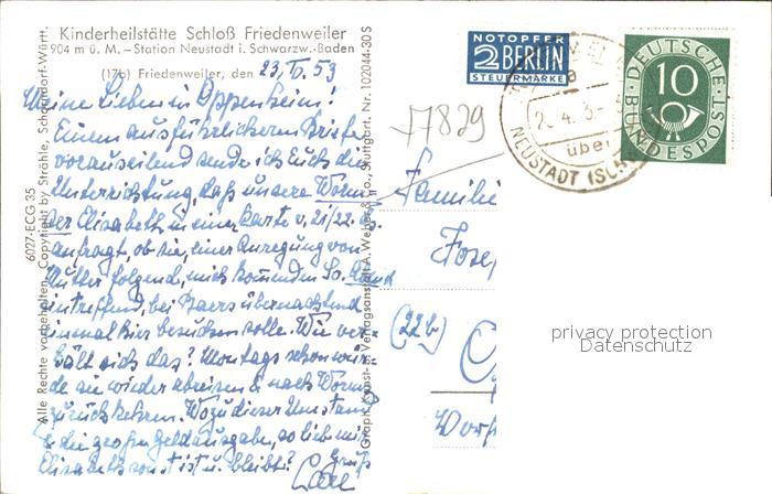 41811427 alte Postkarte Friedenweiler Kinderheilstaette Schloss Friedenweiler postalisch gelaufen Erhaltung siehe scans KatCode: 11110008315039