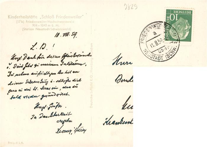 73931235 alte Postkarte Friedenweiler Kinderheilstaette Schloss Friedenweiler postalisch gelaufen Fliegeraufnahme Erhaltung siehe scans [WerneD78] KatCode: 11110008315039