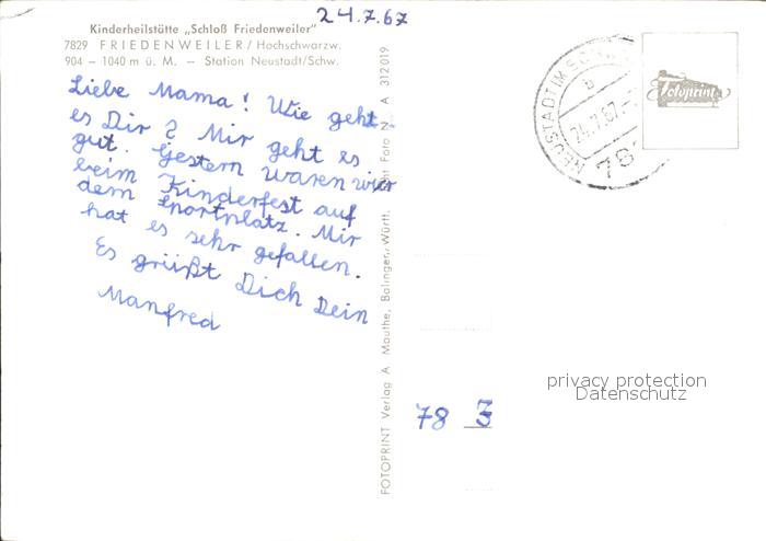 71830736 alte Postkarte Friedenweiler Kinderheilstaette Schloss Friedenweiler Kurhaus Baer postalisch gelaufen Erhaltung siehe scans KatCode: 11110008315039