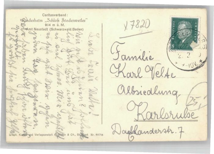 40728860 Friedenweiler Kinderheim Schloss Friedenweiler Künstler W. Seilnacht KatCode 11110008315039
